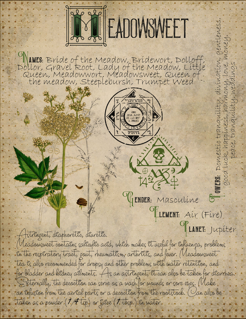Baths: Combine Meadowsweet blossoms with sea salt, chamomile flowers, and a few sprigs of lemon balm for a soothing soak that uplifts the spirit and washes away worry.